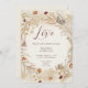 Este doce convite para chá de fraldas de flor selvagem apresenta flores em aquarela entrelaçadas com dicas de ouro moldando texto cuidadosamente escolhido. As borboletas ficam entre a design botânica. Personalize o texto marrom do outono para suas necessidades. Verifique a coleção para coordenar produtos.