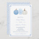 Vaso de jarro de gengibre azul e branco flanqueado por abóboras de aquarela azul e branca e borda "chave grega" e suporte de padrão. Elementos de aquarela foram originalmente pintados por mim. Eu defini o modelo para um chá de fraldas, mas todos os campos de texto são personalizáveis para suas necessidades. Você pode alterar a cor de contraste da borda da Chave Grega na frente e o padrão no verso (mostrado aqui como azul claro) para qualquer cor que você quiser digitando a ferramenta design (abaixo da área de personalização do texto, clique para "personalizar mais") e, em seguida, alterando a cor de fundo em cada lado.