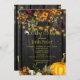 Lindo laranja enferrujado e escuro burgundy outono caem flores e bordas de abóbora com cordas de luzes ouros brilhando sobre um fundo de madeira marrom escuro fazer elegante chá de fraldas com um roteiro de tipografia dourada para caligrafia. ++++++++ Fácil de personalizar com seus detalhes! Adequado para a tradicional corrida de outono | país | fazenda | garotinho ou menina do quintal exterior ou sexo revelam chá de fraldas.