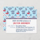 Ahoy! É um garoto! Convide amigos e família para a chegada alegre do seu bebê com este convite de chá de fraldas náutico elegante e elegante! Ele tem um padrão bonito feito usando um pequeno veleiro com uma vela de padrões coloridos de listras e uma estrela em seu conselho, uma âncora, uma bússola, uma boia e uma linda teia em listras azuis e brancas. A paleta colorida de vermelho, branco, azul é perfeita para uma festa do tema náutico para um garotinho marinheiro! Personalize facilmente com os detalhes do seu partido.