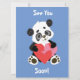 Tenha uma alegre celebração da chegada do seu bebê precioso com estes bonitos convites para o chá de bebê. Mostrando um fundo azul, o convite apresenta uma linha de corações em preto e branco no topo e no fundo do convite. Um bebê panda está segurando um coração adorável. A parte de trás do convite apresenta o bebê panda em tamanho maior, exibindo "Até logo". Peça seus convites para preciosos hoje mesmo! Trabalho de arte criado por: AMBilustrações http://www.etsy.com/shop/AMBillustrations/