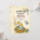 Este adorável convite para chás de fraldas de desenho mostra um pintinho bebê eclodindo de um ovo colorido em um ninho, cercado por flores de primavera e um pássaro azul alegre.