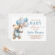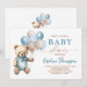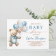 Convite de chá de fraldas Trendy Blue Boy com ursinho de pelúcia bonitinho com balões de pastel azul e castanho. Itens correspondentes disponíveis.