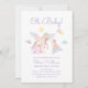 A aquarela "Oh Baby!", tema de chá de fraldas de conto de fadas unicórnio, design apresenta o pastel roxo, rosa, verde, unicórnio amarelo e a princesa decor com balão de estrela branca, nuvem e espaço. modelo completamente editável, personalize facilmente o texto. Excelente para uma festa de chá de menina o ano inteiro.