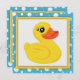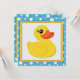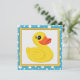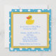 Bolhas azuis e brancas adoráveis com convites para chuveiros de bebê de pata de borracha amarela. Este convite para chá de fraldas de pata de borracha amarela fofo é facilmente personalizado para o seu evento adicionando detalhes do evento, estilo de fonte, tamanho e cor de fonte e texto.