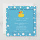Bolhas azuis e brancas adoráveis com convites para chuveiros de bebê de pata de borracha amarela. Este convite para chá de fraldas de pata de borracha amarela fofo é facilmente personalizado para o seu evento simplesmente adicionando detalhes do seu evento, estilo de fonte, tamanho e cor de fonte e texto.