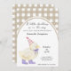 "Um pouco de patinação está a caminho". Celebrar com esta festa de chá de fraldas de pato fofo! Um pequeno patinho de aquarela com chapéu de aniversário. Gaiola castanha.