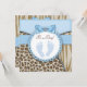 Adorável como convite para chá de fraldas de pegada azul e castanho. Este elegante convite para chás de fraldas castanho-impressão e azul-tigre-leopardo e-tigre é facilmente personalizado para o seu evento, adicionando detalhes do seu evento, estilo de fonte, tamanho e cor da fonte e texto.