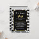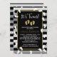 chá de fraldas para um chá de fraldas gêmeo! O convite apresenta pegadas de bebê gêmeas bonitas em branco contra um fundo preto e falso em prata.