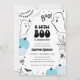 Este chá de fraldas de sanduíche de halloween é perfeito para o seu chá de fraldas bonitinho de halloween, chamado "um pequeno boo está quase vencendo" para o seu bebê. O convite apresenta fantasmas brancos e pretos bonitos junto com abóboras azuis-claras, aranhas, teias e morcegos. A tipografia ousada e groovy "um pouco boo" destaca-se fazer ponto focal do convite. Use os campos modelo para adicionar suas informações e personalizar este convite. Entre em contato com o designer se precisar de assistência para adicionar suas informações.