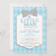 Convide seu convidado com nosso tão doce convite para chás de fraldas de homem apresentando uma cinza e gravata de arco branca para bolinhas em um fundo de estilo azul. Sacudir o nosso chá de fraldas de meninos modernos e pré-disquinhos convidando para ver um padrão de argyle correspondente de volta!