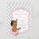 Chá de fraldas cor-de-rosa com uma adorável menina étnica vestindo um tutu rosado frilamente e uma corda de pérolas num lindo fundo de pérolas tufadas com bonito prata e arco rosa. Este adorável convite para chás de fraldas pérolas de bailarina cor-de-rosa cor-de-rosa é facilmente personalizado para o seu evento simplesmente adicionando os seus detalhes no estilo de letra e na redação da sua escolha. Este é um design impresso sem pérolas reais, tufagem, brilho, etc.