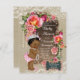Burlap russo, rendas e pérolas com uma adorável princesa americana étnica africana em calças de rúfle vestindo uma corda de pérolas em uma bela braçadeira e fundo de renda. Este chic rustic burlap lace e o convite para chás de fraldas pérolas são facilmente personalizados para o seu evento, adicionando os seus detalhes no estilo e cor da fonte, bem como o texto da sua escolha.