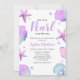 Convide seus convidados em estilo com este convite adorável. Este convite é perfeito para um chá de fraldas comemorando um pequeno a caminho! O convite apresenta cores púrpuras e turquesas suaves com pérolas, conchas e estrelas-do-mar que acrescentam um toque de chorume. Este convite é certamente apelativo para uma ampla gama de pessoas. O convite pode ser facilmente personalizado para se adequar aos detalhes exclusivos do evento, garantindo uma experiência memorável para todos os participantes.