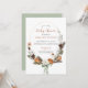 Um convite para chás de fraldas de inverno para citrinos e pinheiros, com uma estrutura de cor, pinheiro e floral em tons verdes e laranja queimados.