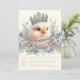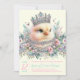 Convite para chá de fraldas pintinho bonito com um pintinho lindo adorado com joias e tiara num fundo floral pastel. Este convite para chá de fraldas de pintinho para meninas é facilmente personalizado com o seu texto e você pode alterar a cor de fundo na parte frontal e traseira e a cor do texto.