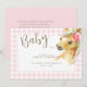 Convite para Chá de fraldas de Pônea Gingham rosa. Rosa e Branco.