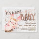 Porco, porquinho, convite para chás de fraldas de animais fazendas. As cores incluem marrom e bronzeado com fundo de madeira.
