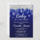 Convites Chá de fraldas de Prata Azul com Floco de Neve de