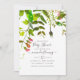 Fortaleza verde e primavera branco convites para chuveiros de bebês com elegante tipografia de escrita manual, personalizável para suas especificidades de evento.