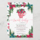 Chá de fraldas de chá de natal de inverno bonito, com flores rosa adoráveis, azuis e cor-de-rosa, ramos de pinheiros em uma xícara de chá rosa com padrão de flocos de neve e coroa floral botânica de inverno e confete de cintura falsa. Um doce bebê está se preparando!