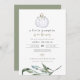 Este convite para o chá de fraldas apresenta uma abóbora branca de aquarela com um floral branco boêmico e um galho verde no fundo. Edite todas as palavras para corresponder às suas necessidades de eventos.