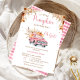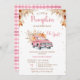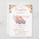 Caminhão Rosa Russo Pequeno Chá de fraldas de Abóbora Convidando Menina no outono ou outono Convite de chá de fraldas de abóbora rosa-rosa apresentando um caminhão, abóboras rosa e laranja e folhagem castanha e flores silvestres. Este convite para chás de fraldas de abóbora é ideal para o chá de fraldas de queda de uma menina.