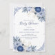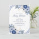Convites Chá de fraldas de Quadro de Flor Azul Elegante Vin