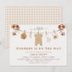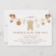 Rustic Brown Beige Clothesline Fall chá de fraldas Convite para chá de fraldas de outono russo apresentando uma linha de roupas com roupas de bebê, abóbora e folhagem de outono. Esta abóbora está no caminho do convite para chás de fraldas também apresenta uma fonte de caligrafia decorativa.