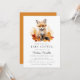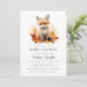 Convide convidados para comemorar as mamães a serem com estes adoráveis convites para chuvas de bebês com temática florestal. O convite para chá de fraldas neutro por sexo apresenta uma ilustração aquosa de uma raposa bebê sentada sobre folhas do outono em tons de laranja, vermelho e amarelo. Personalize os convites para o chá de bebê de raposa bebê com o nome e os detalhes do chá da futura mãe.