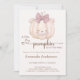 Um Simples Convite De Chá de fraldas De Urso De Abóbora. "Um pouco de abóbora está a caminho". Celebrar com esta abóbora temida para a festa do chá de fraldas! Abóbora aquarela com cara de ursinho.
