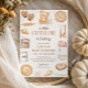 Celebra a mãe para estar com este convite de Chá de fraldas de Queda de Urso de Teddy. Apresentando um doce ursinho segurando torta, rabiscos com aquarela, tortas de outono e tons de queda aconchegantes em um gingham bege de volta, este design rústico é perfeito para uma padaria neutra do ponto de vista do gênero, com o tema chá de fraldas ou a queda do bebê. Este convite editável é fácil de personalizar.