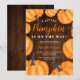 Um pouco de abóbora está a caminho! Celebre sua chá de fraldas neste outono com esta mão linda pintada de abóboras laranja-cor e elegante tipografia caligráfica moderna em madeira marrom rústica.
