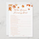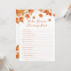 Adicione um toque divertido à sua celebração com este Chá de fraldas de outono personalizado que conhece o melhor cartão de jogo da Mamãe. Perfeito para encontros confortáveis, este charmoso jogo ajustado maravilhosamente com ideias de chá de fraldas do outono e é um excelente adicional ao seu chá de fraldas de outono. Quer você esteja planejando temas de chá de fraldas de outono, procurando por ideias de chá de fraldas de outono, ou explorando ideias de chá de fraldas de outono e ideias de chá de fraldas de outubro, este cartão de jogo traz alegria sazonal para o seu partido!