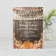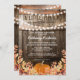 Convites para bebês russos no outono, com formação de um fundo de madeira de carvalho, luzes de cordas reviradas, folhas de queda, uma abóbora de colheita e um modelo de chá de fraldas fácil de personalizar.