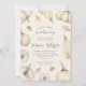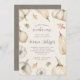 Os convites encantadores de chuveiros de bebês apresentam uma fronteira de abóboras brancas e cremosas e folhas de outono, com os detalhes do seu chá de fraldas em letras de cinza. "Uma pequena abóbora está no caminho" aparece no topo. Perfeito para chás de fraldas de outono ou época de Halloween.