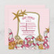 Adorável tema de chá náutico de menina com estilo contemporâneo. Este convite para Chás de fraldas inclui anéis de boia salva-vidas de veleiros, âncoras, estrelas-do-mar e acentos de concha sobre fundo de listras cor-de-rosa e branca. Personalize as áreas de texto com suas informações. Fundo de stripe correspondente na parte traseira da placa.