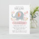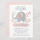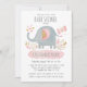 Este convite para o chá de fraldas de elefante apresenta um elefante giro soprando água de seu tronco. O elefante é acentuado com alguma folhagem tropical rosa e dourada e uma borboleta rosa. Personalize-o com a mamãe de honra por baixo do elefante. O convite é para um chá de fraldas virtual. Projetado para você pelo Blackberry Boulevard.
