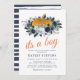 Rustic fall is a boy baby chuer convites com um fundo branco chico que pode ser mudado para qualquer cor, um design floral de abóbora na moda de marinho d'água, e um modelo moderno de festas de bebês que é fácil de personalizar.