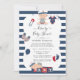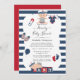 Um menino de temor náutico bonito dirige através de convites de festas de chá personalizáveis de acordo com as suas especificações de evento. Parabéns ao PremiumClipart.
