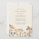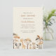 Um belo convite para Chás de fraldas de animais Safari. Convide seus entes queridos para comemorar a chegada do seu pequeno selvagem! Este convite para chás de fraldas com o tema safari bonito apresenta um grupo de adoráveis animais da selva de aquarelas (elefante, girafa, meerkat e leopardo) e árvores em tons sujos.