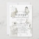 Este convite de chá de fraldas de menino branco apresenta animais árticos como lebre de montanha, pinguim, urso polar e raposa ártica com falso/falso falso floco de neve prateada. O verso apresenta um fundo azul bebê com padrões brancos de neve. Personalize-o para as suas necessidades. Você pode encontrar produtos correspondentes na minha loja.