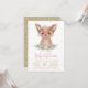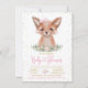Bebê de raposa-menina convida com adorável raposa-menina aquática vestindo um arco rosa giro em um fundo verde e ouro. Este convite fox chá de fraldas é facilmente personalizado com os detalhes de seu evento. Você pode mover o buquê conforme necessário para o seu texto e pode remover o plano de fundo dourado no verso para adicionar a cor de fundo de sua escolha.