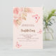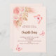 Para um chá de fraldas moderno estilo boho. Um fundo de pêssego. Decorados com ouro rosa e flores, rosas, erva-pampas e borboletas cor-de-rosa. Personalize e adicione um nome e detalhes da parte. Fundo: fundo colorido de pêssego e borboleta.
