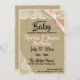 A Vintage inspirou um lugar e uma burlap com convite para chá de fraldas rosa. Convite russo para chá de fraldas de país com texto de manual de tendências que pode ser alterado como preferido.
