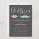Um gênero giro e caprichoso revela um convite para chás de fraldas com bigode e lábios contra um fundo escuro chico que se parece com um quadro. Também disponível com fundo branco: