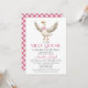 Comemore com este Bobo bonitinho, convite para Chá de fraldas da Garota de Fita Rosa. Ele apresenta um ganso com uma fita rosa e o texto "Um novo ganso Bobo está prestes a ser solto! " O verso apresenta uma verificação/xadrez de gingham rosa.