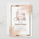 O convite para chá de fraldas bonito apresenta chá de fraldas ouro rosa. Esses convites para chuveiros de bebês são facilmente personalizados para seu evento simplesmente adicionando seus detalhes.