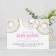 Convite para Chá de fraldas de Rosquinhas Brancas de Watercolor | Celebrar com este convite divertido e festivo ao chá de fraldas. Este chá de fraldas personalizável apresenta rosquinhas de cor d'água de chocolate branco com borrifadores. As cores são perfeitas para uma chá de fraldas. Outras cores estão disponíveis.