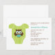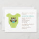 Os convites para chuveiros de na moda e bebês doces apresentam uma ilustração vetorial adorável de um criador de bebês ou t-shirt com uma coruja de bebês fofinhos. Meninos, meninas ou versão neutra desses mesmos convites estão disponíveis em nossa loja. Cores personalizadas disponíveis por solicitação. Visite nossa loja para produtos correspondentes, como notas de agradecimento, etiquetas de favorecimento, etiquetas de endereço, envelopes, decorações e muito mais! Erin Bradley